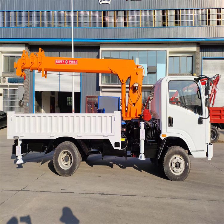 花莲市重汽豪曼小型四吨直臂蓝牌随车吊厂家 起重机价格